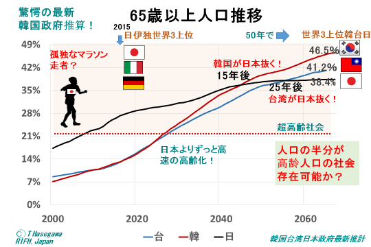 50年後の韓国は満65歳以上の人口が半分を占め世界で最も高齢化した国になるという見通しが出てきた。