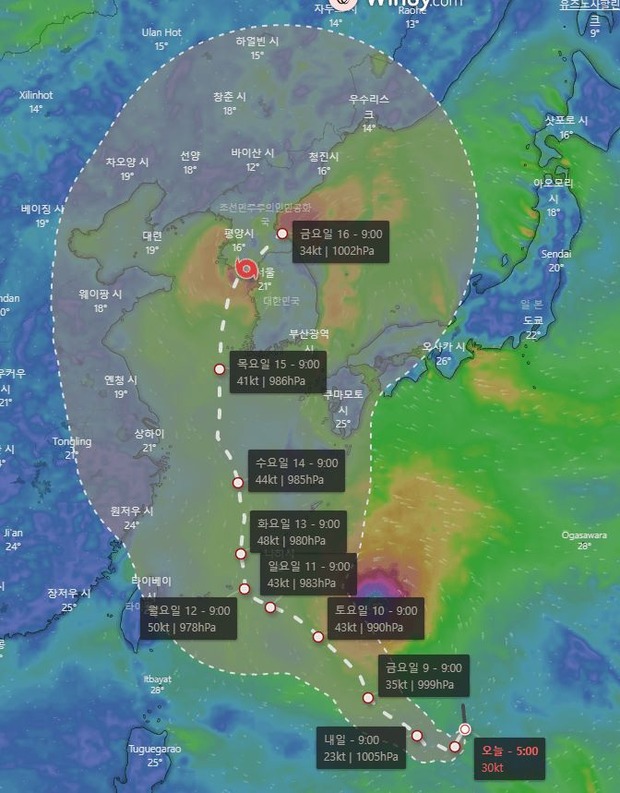 現在の予報だとソウル直撃の可能性もあるとか今年のボジョレーヌーボーみたいになってきたな(笑)