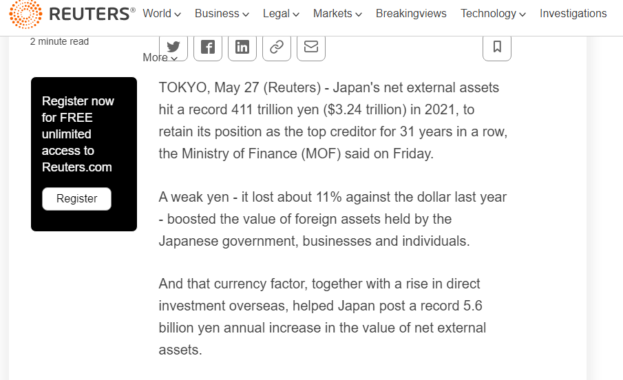 -------------日本の為替レートが落ちると日本が保有する膨大な外貨資産の価値が上がるの理解してない韓国人多すぎない?