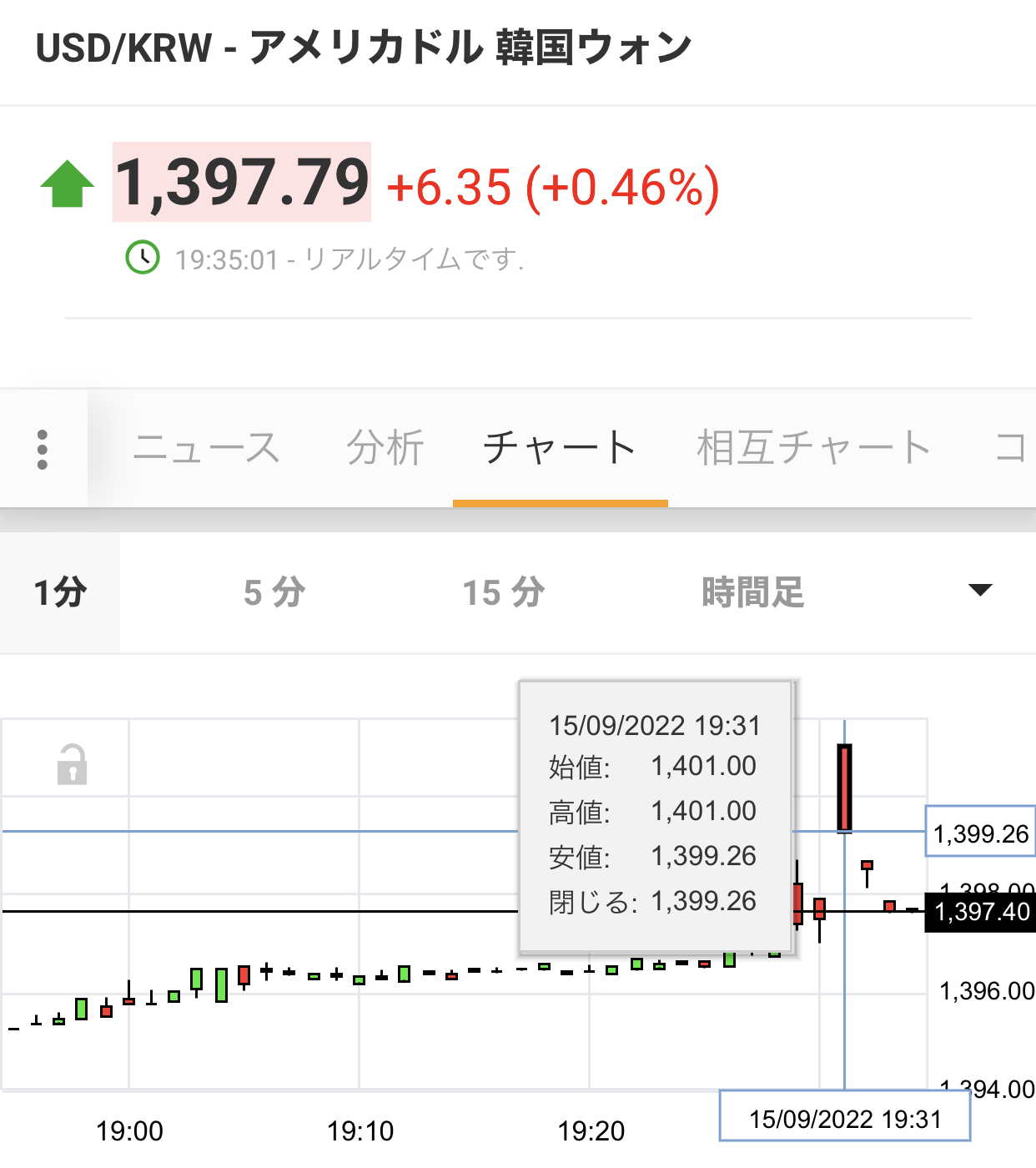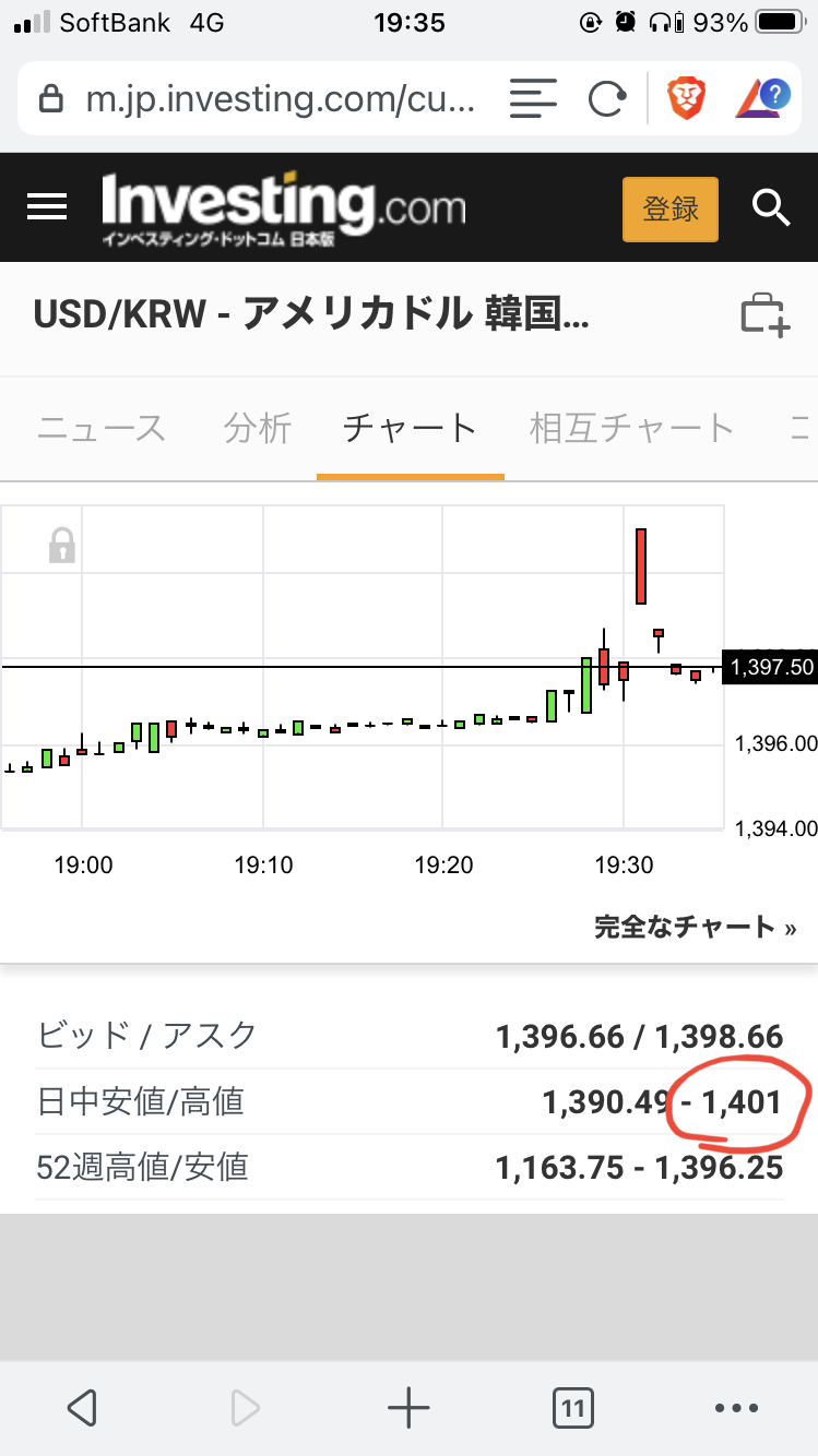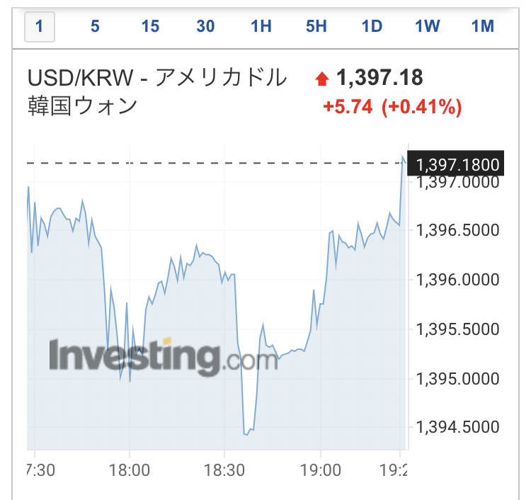 約7ヶ月で200ウォン落ち、1400ウォンを突破したら加速が付く、年末迄には1500ウォン突破は確実になる。