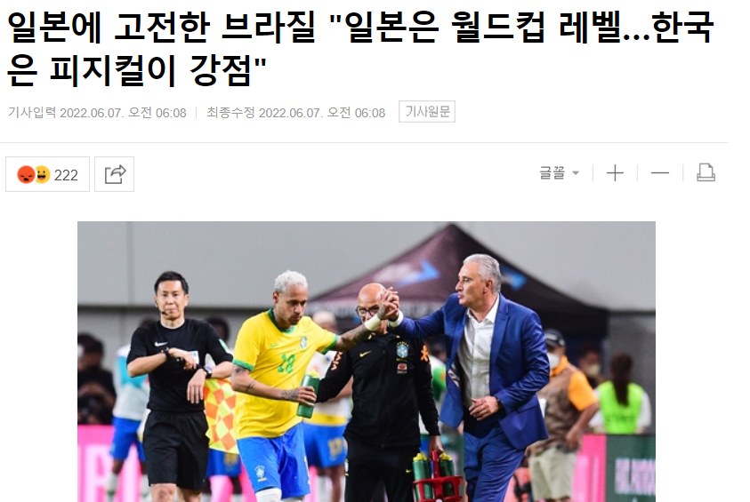 ブラジルのチッチ監督は日本戦を終えた後、日本の日刊スポーツなどを通じて「高いレベルの戦いだった。 両チームとも高いレベルの試合を繰り広げた。 ブラジルも日本もW杯レベル」という考えを示した。 また、「アジアサッカーに対する懐疑的な見方は無視してもいい。 アジアサッカーを批判する人はアジアサッカーの水準と競争力を知らない」と強調した。