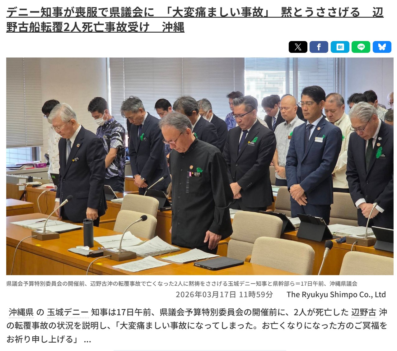 玉城氏は当初、3月下旬に出馬会見を開く方向で調整していたが、同16日に辺野古沖で移設反対派が運航する小型船2隻が転覆し、女子高校生ら2人が死亡した事故を受けて延期した。