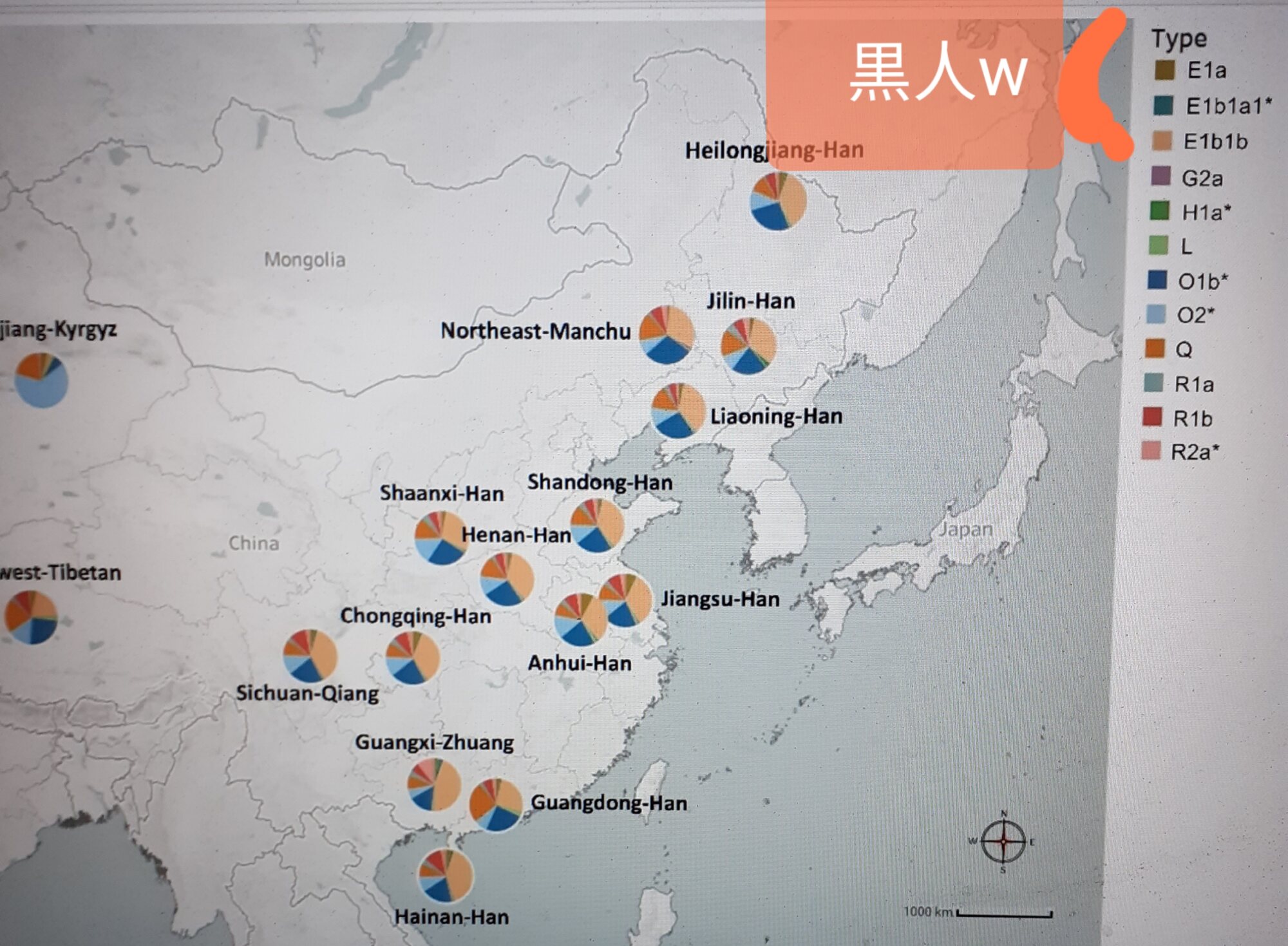 E1b1b⬅アフリカ黒人のDNAの中国漢族の比率