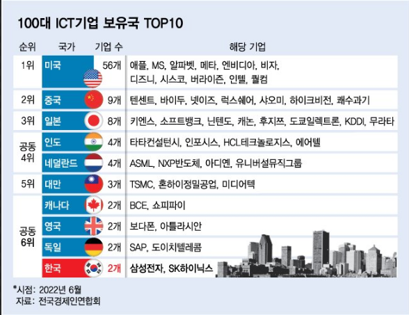 韓国はICT強国?…世界100大企業にはサムスン・SKハイニックスのみ。
