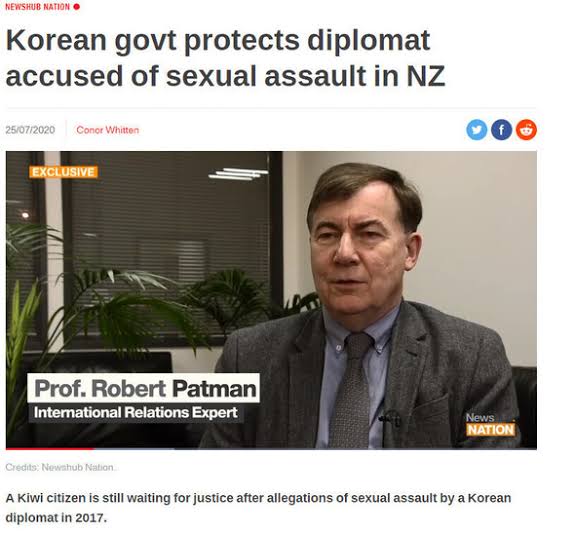 2017年12月、駐ニュージーランド韓国大使館に勤務するニュージーランド人男性が、A公使参事官からセクハラを受けたと問題を提起した。A氏が尻や胸などに不適切に接触してきたという内容だった。被害者はA氏に問題を提起したが、その後も大使館のエレベーターの中でA氏に股間などを触られたと主張した。