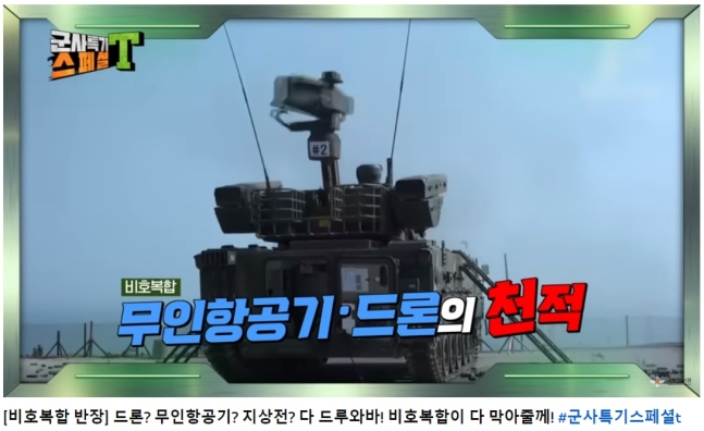 国防広報院は今月16日、ユーチューブの同院公式チャンネル「国防テレビ」に飛虎複合を紹介する動画を掲載した。飛虎複合は、K-30対空自走砲「飛虎」に携帯用対空ミサイルを装着した複合兵器システムで、「ドローン・キラー」としても知られている。国防部関係者も動画で「飛虎複合は低高度対空防衛を目的に開発された」「現時点で出ている兵器システムの中で最も効果的だ」と言っている。