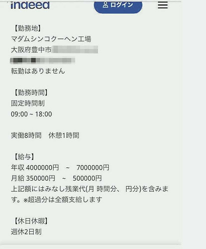 申し立ては8月。男性によると、昨年3月、求人サイト「インディード」を見て、マダムシンコの工場で菓子製造をする仕事に応募した。