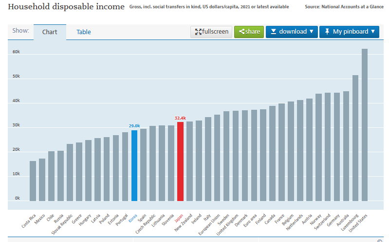 ★OECD可処分所得 ランキング~