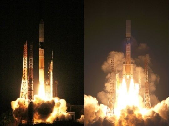 H2Aのブースターを消しお隣の国のロケット風に見せかけています。さらに日本の国旗と日本のロゴが消されています。