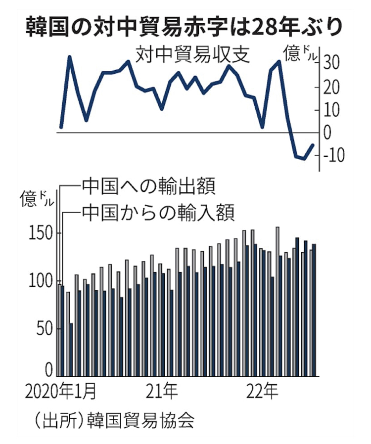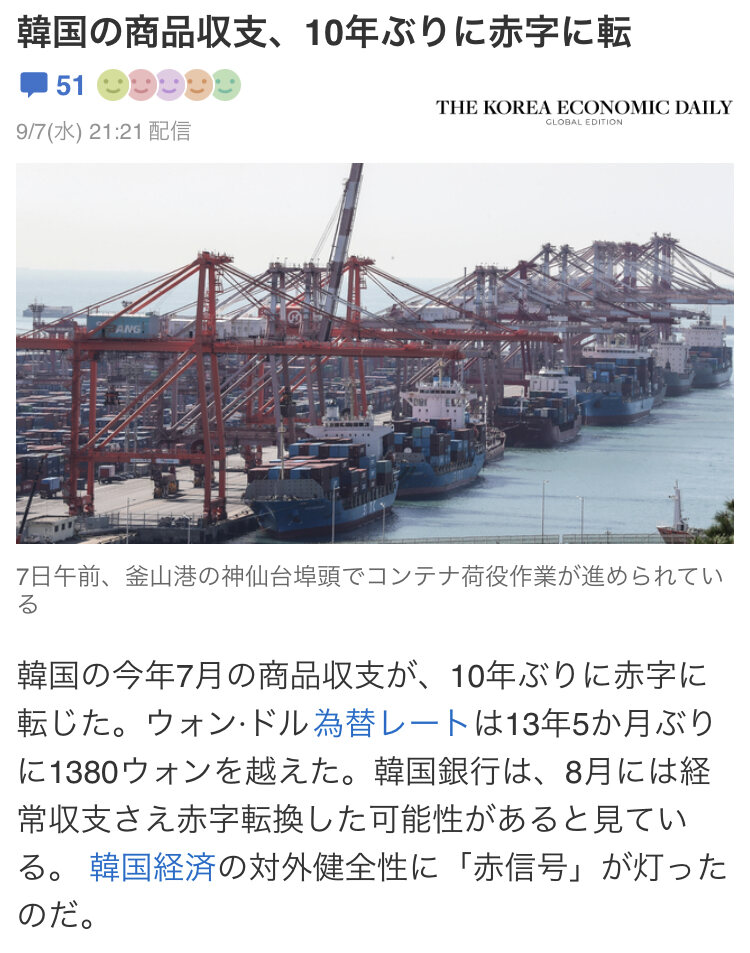 韓国は輸出で食べてる国だから、貿易赤字だと経済回らないでしょ。