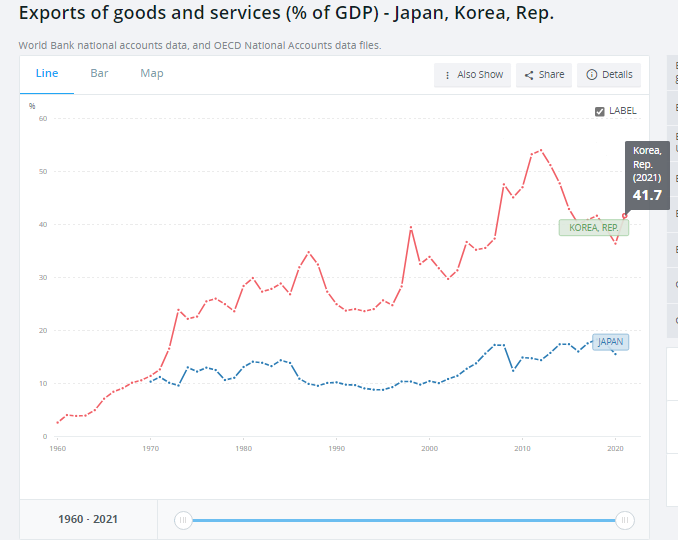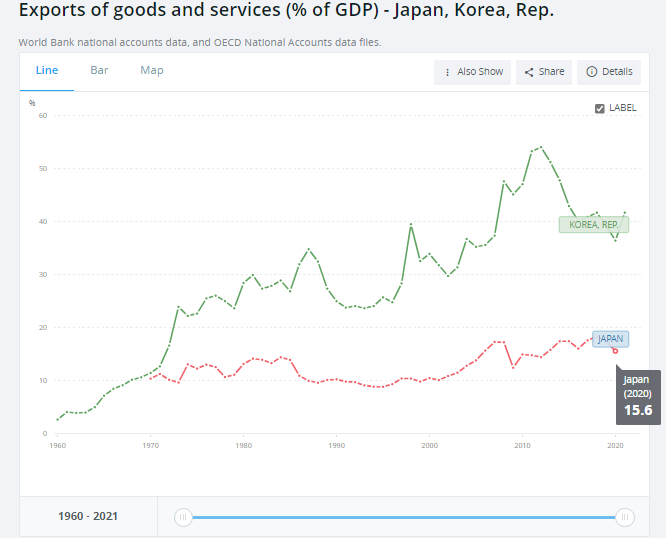 https://data.worldbank.org/indicator/NE.EXP.GNFS.ZS?locations=JP-KR