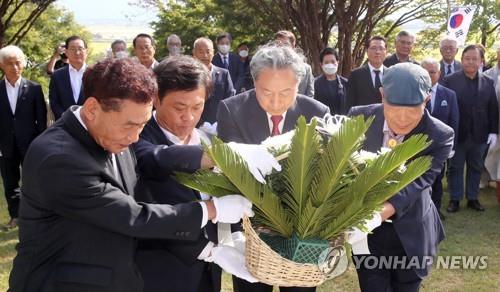 鳩山氏は同日午前、珍島郡で開かれた慰霊祭に出席した後、井邑市にある三・一運動記念塔を参拝した。