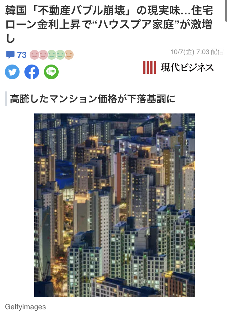 韓国にとって今年の冬は、相当厳しくなりますよ。「韓国『不動産バブル崩壊』の現実味