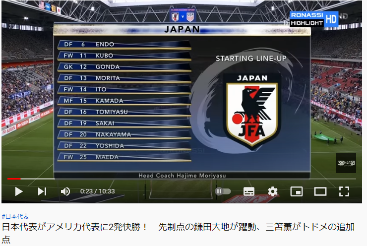 日本(tomiyasu)、ランク上の米国を0点Shutout 日本 2-0 米国 (ドイツ)