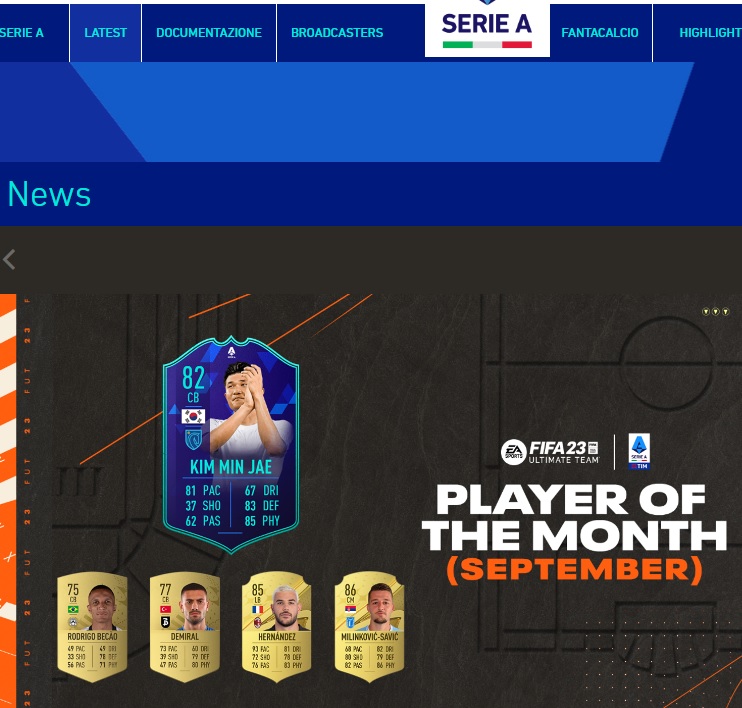 세리에a 역대 DF 두번째로 김민재가 수상 (1회 쿨리발리)