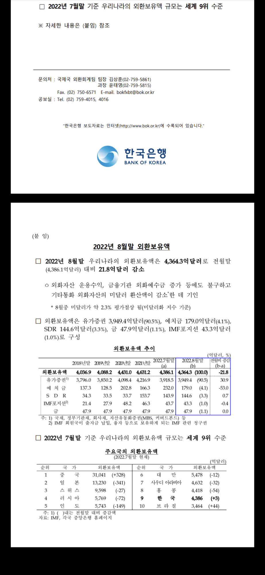 これは米国の金融引き締め速度が速くなるだろうという見通しにドル高基調が続き、為替レートが急激に上昇すると当局が介入に乗り出したと分析される。為替当局の介入の影響で、外貨準備高は4月(-85億1000万ドル)、5月(-15億9000万ドル)、6月(-94億3000万ドル)の2四半期だけで195億300万ドル減少した。