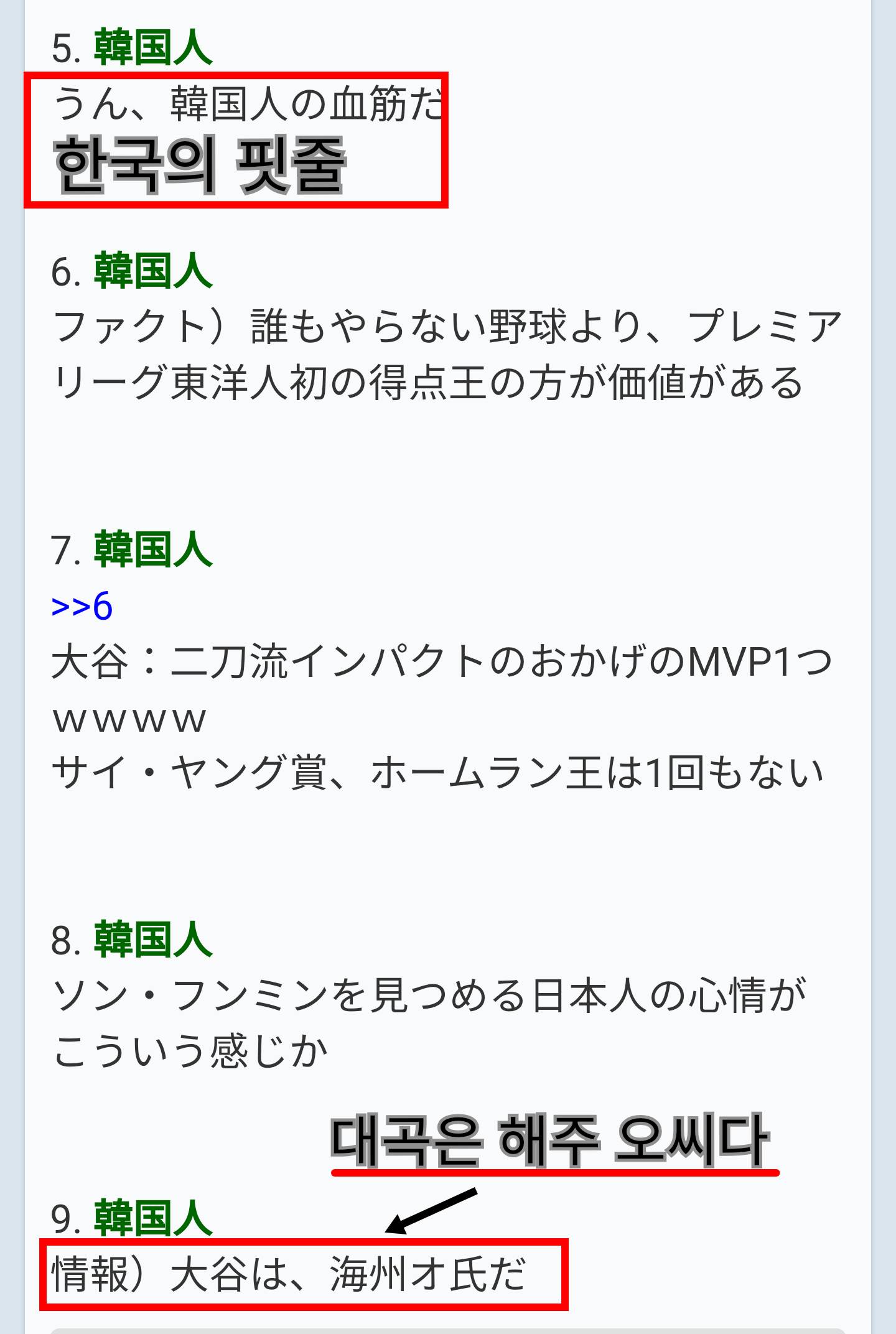このスレの韓国人の反応で、朝鮮人が大谷を在日とするコメントしているではないか