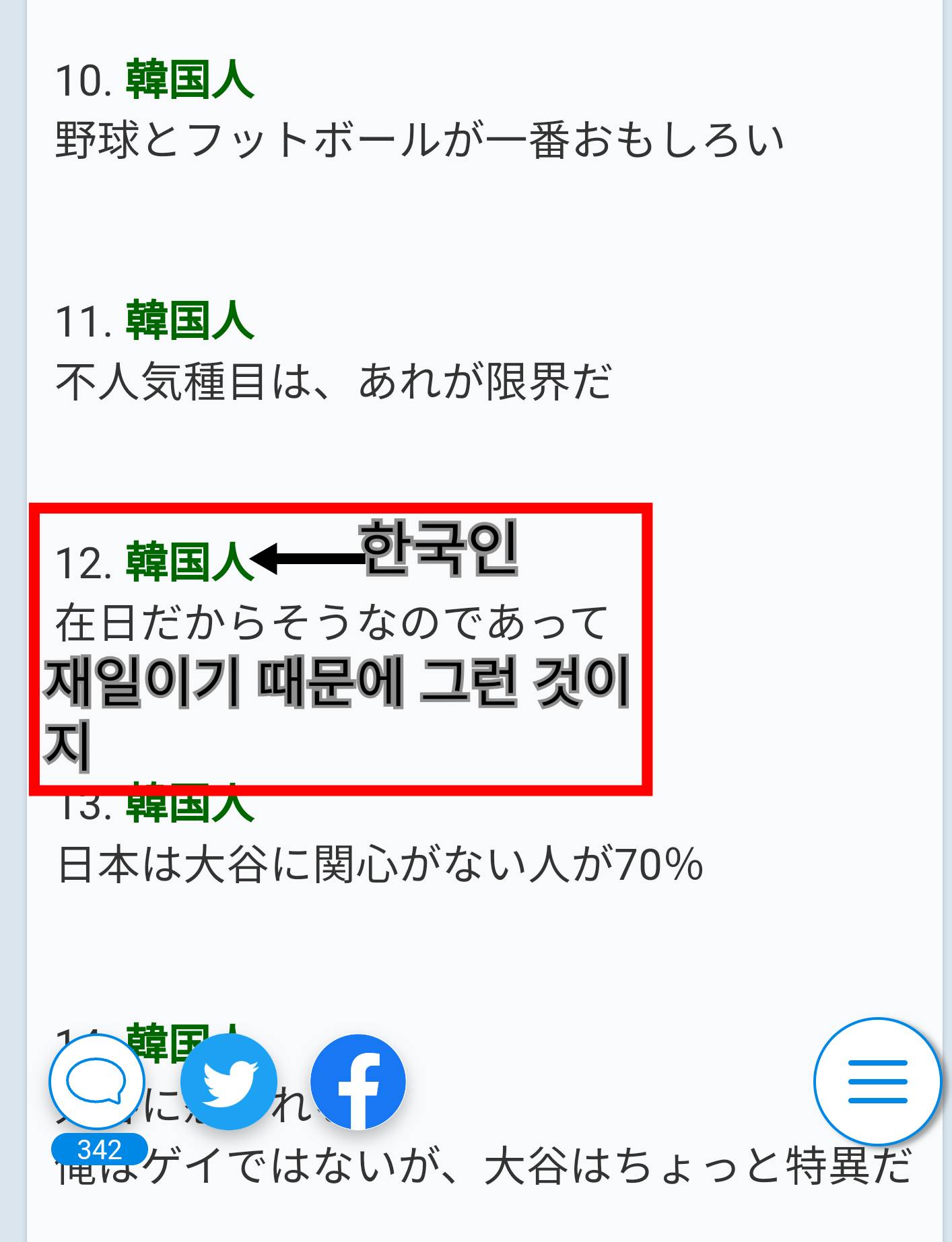 大谷が嫌韓!って書いたのが