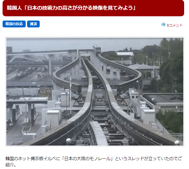 韓国のネット掲示板イルベに「日本の大阪のモノレール」というスレッドが立っていたのでご紹介。