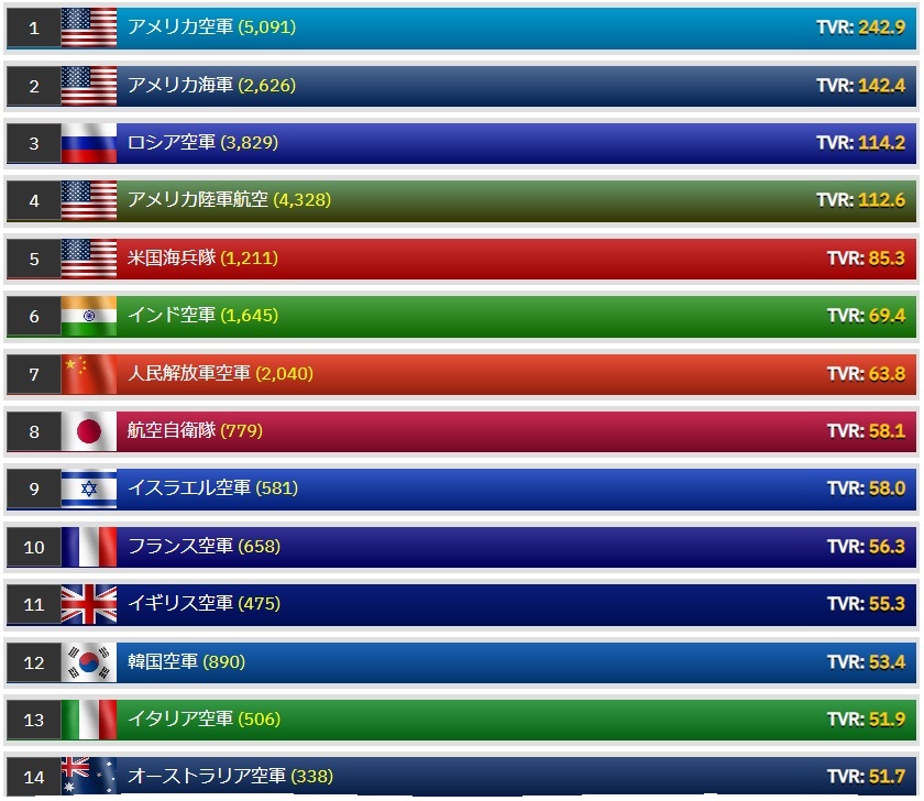 「WDMMA が提供する世界のさまざまな武装航空サービスの現在のランキング。」