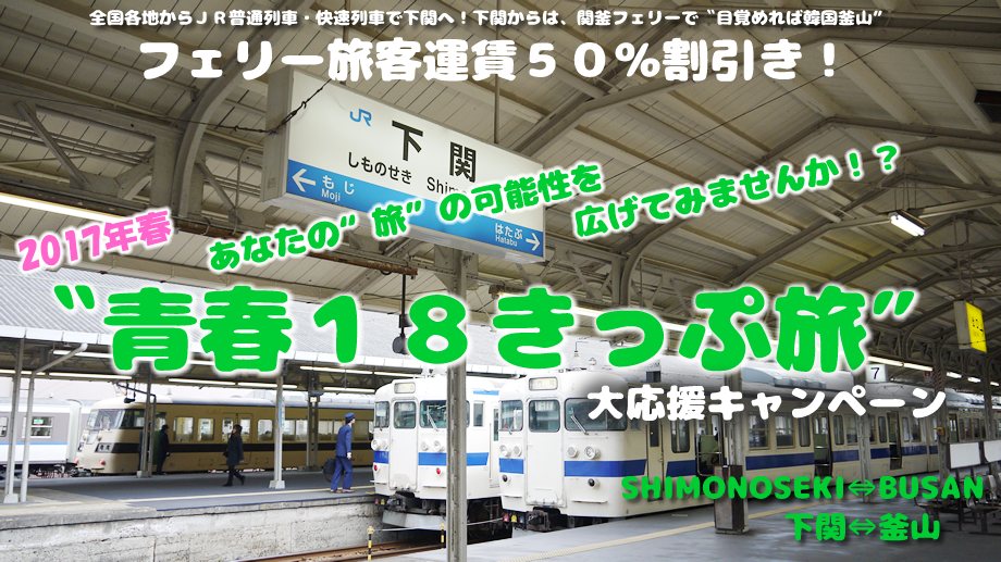 関釜フェリーが「青春18きっぷ旅 大応援キャンペーン 2017年春」を実施している。山口県下関と韓国・釜山間が9000円で往復できると、ツイッターなどで話題になっている。