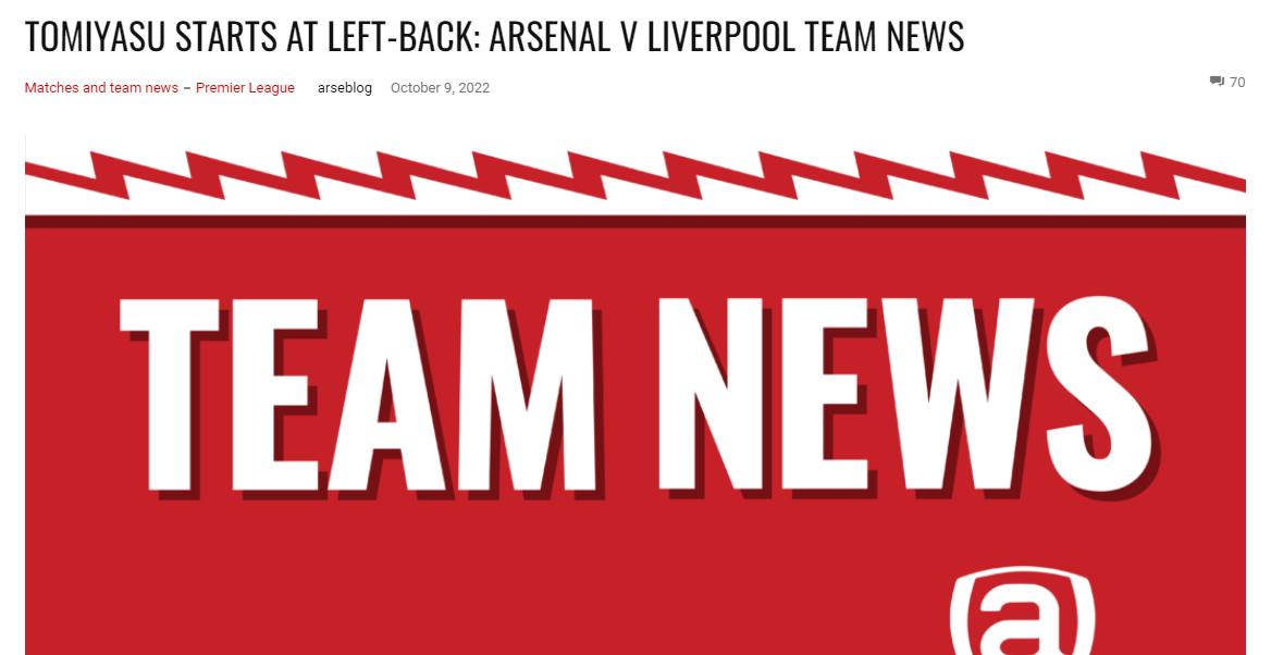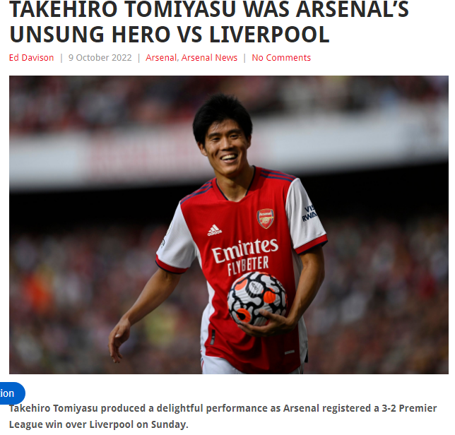 토미야스 타케히로? 챔피언스 리그에 출전할 수 없는 아스날에서도 벤치인 선수야