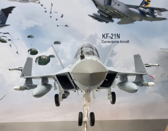 韓国航空宇宙産業(KAI)が提案する国産艦載機KF-21Nの模型が先月21日、京畿キンテックスで開かれた大韓民国防衛産業展示会(DX KOREA 2022)に展示されている。