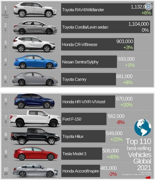 😜⤵「2021年全世界自動車販売量ランキングTop110を見てみよう」