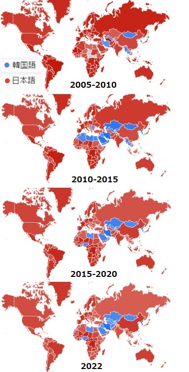 ・欧米諸国では、韓国語への関心度が高い(日本語よりも関心度が高い)国は皆無。>>19