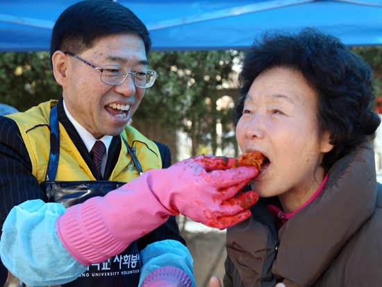 本物の韓国は美味しいからと言って嫌がる人の口にキムチを入れる「おせっかい」商売熱心だね(^^)