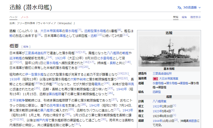 艦名は鯨の別名に由来する。日本海軍の軍艦としては御召艦・迅鯨に続いて2代目。嫉妬のキムチマン😄