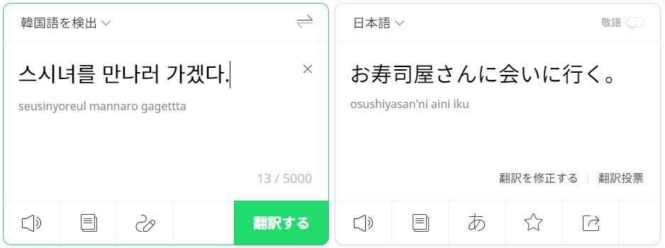Papagoでは、”お寿司屋さんに会いに行く。”となりますね。