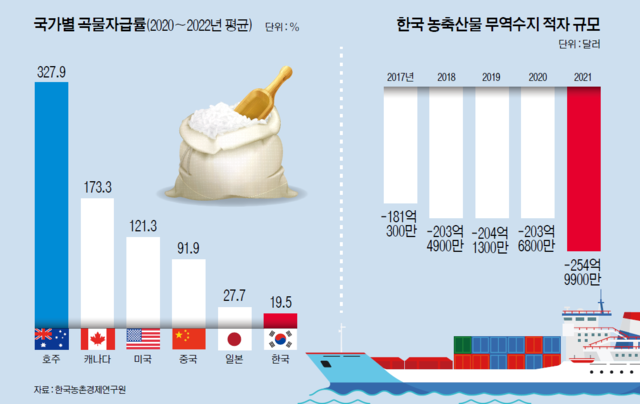 경제 대국 중 최하위 권이라는 한국 식량 자급률 .