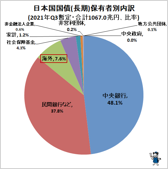 海外が日本国債を保有しているのは、7.6%。