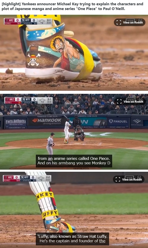 MLBヤンキース戦に『One Piece』のルフィ登場。実況が説明まで加えてしまう。