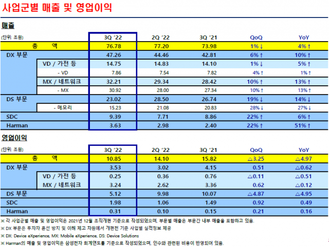 DX部門は第3四半期の売上47兆2600億ウォン、営業利益3兆5300億ウォンを記録した。 MXはフォルダブルなどフラッグシップとウェアラブル新モデルの販売が好調を見せ、否定的な歓迎郷の持続にもかかわらず効率的な資源運用などで堅調な収益性を記録した。