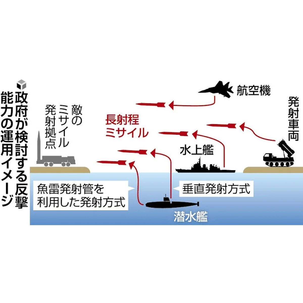 発射機材は、車両や水上艦、航空機を念頭に置いてきたが、配備地などを探知されかねない。相手に反撃を警戒させ、抑止力を高めるには、より秘匿性の高い潜水艦を選択肢に加える必要があると判断した。