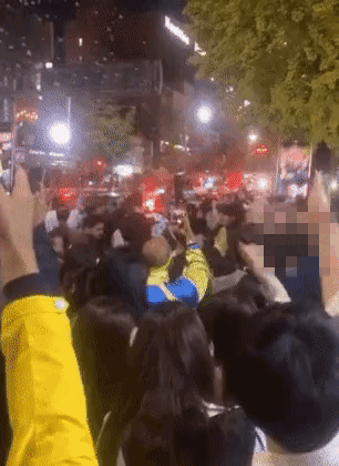 救急車の前で踊って歌って「セックス」叫ぶ韓国人たち