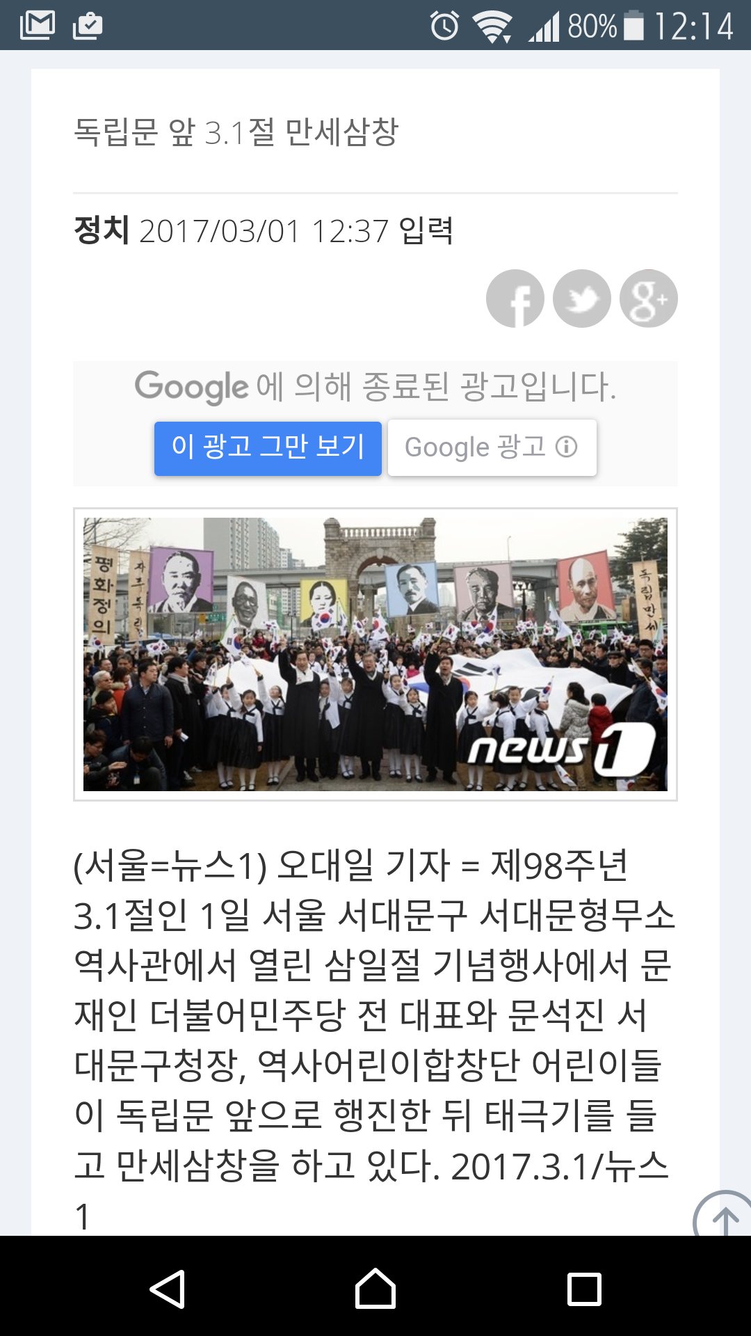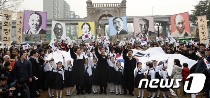 독립문 앞에서 3.1절 만세삼창!