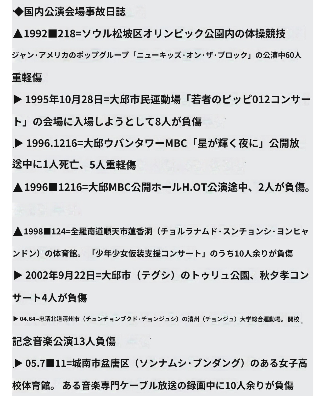 そして、韓国の人達が二度と同じ悲しみ味合わない社会にするのは貴方たちです。2、3十年前の日本の事故を引き合いに出してる朝鮮人がいて笑うわ