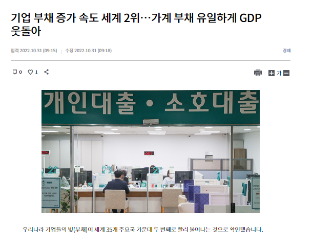◆韓国、企業負債増加速度世界2位… 金融危機の可能性↑
