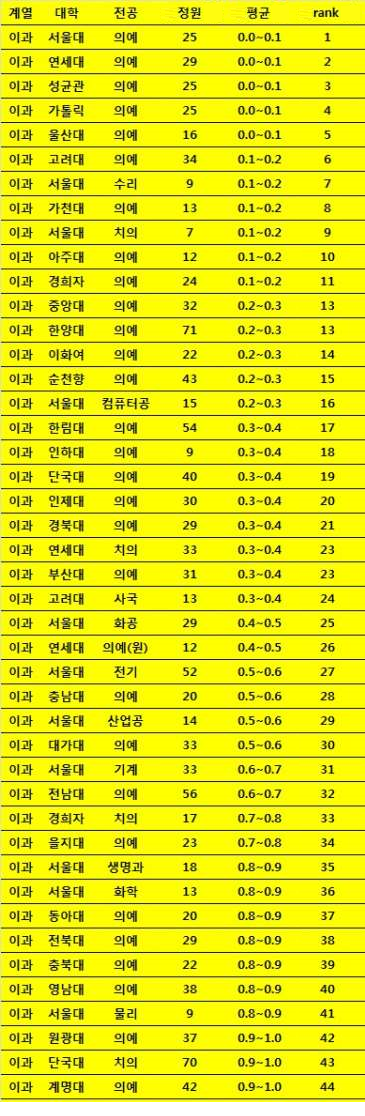 서울대 물리학과는 삼류대 의학부보다 커트라인이 낮다.?????