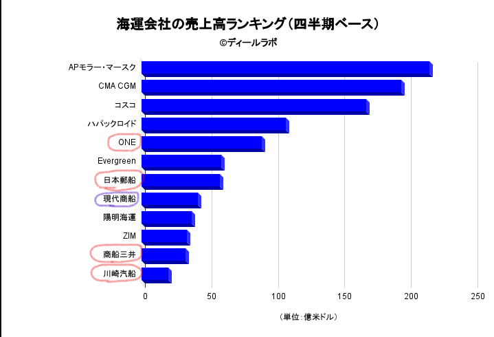 海運業は、運賃上昇の恩恵を受けて、どこの国でも売り上げが上がってるんだよw