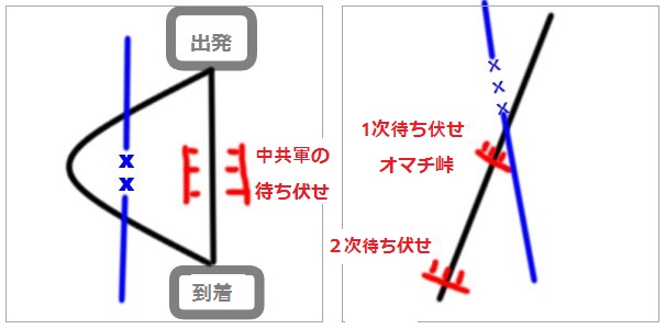 17日共産軍に五馬峠を抑えられ主要な退路を塞がれ、殆ど戦うことなく山岳地帯の小道を