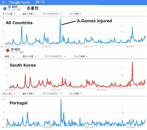 韓国では、気にする人もいない状態だったから、韓国人には判らないかもしれないが、おおよそ世界の関心度はポルトガルの方に近く、それ以外の時期で関心度が上回ったのは、韓国くらいしかない。일본인 49% "패전일에 가해·반성 언급할 필요 없다".