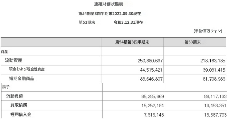 短期借入金7.6兆ウォン(売上ファクタリング)