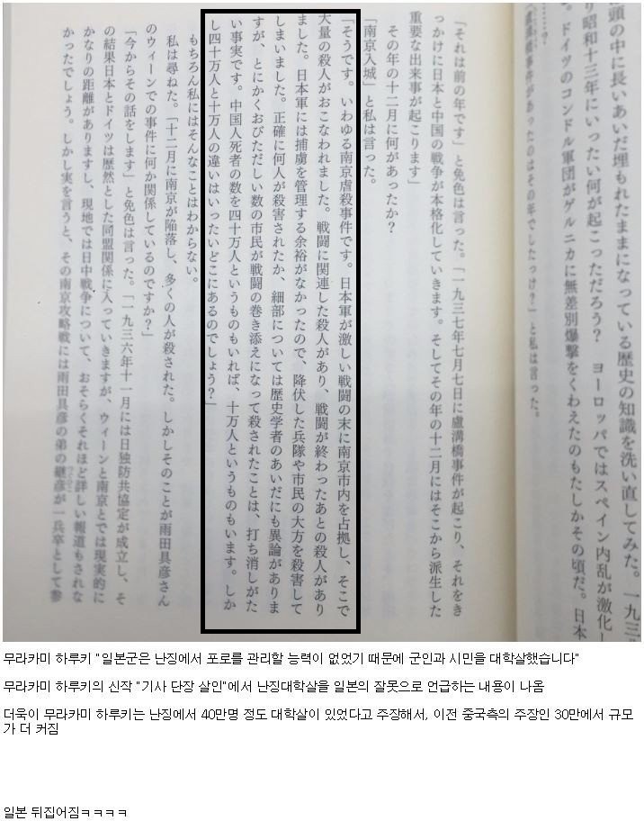 1미군2017/03/02(Thu) 23:23:42ID:gyODY0Nzk(1/3)NG報告비겁한 회피보다는 용기있는 직시를.얕은 정당화보다는 깊은 성찰을.이것이 지성인의 태도입니다."일본군은 항복한 군대와 시민까지 닥치는대로 학살했다. 그 수는 수십만명에 이른다"BY 무라카미 하루키.>>5>>21>>24>>33>>34>>36>>37>>40>>50>>56>>57>>60>>613