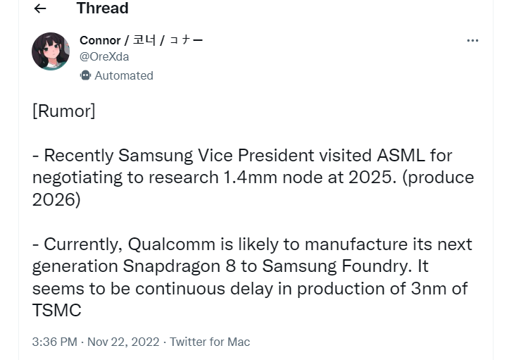 한편 삼성전자는 4/5nm 파운드리 공정은 문제가 없다는 입장이다. 삼성전자는 지난 10월 ‘삼성 파운드리 포럼’을 통해 관련 공정에 대해 ‘일부 문제가 있었지만 정상화했다’고 밝혔다.