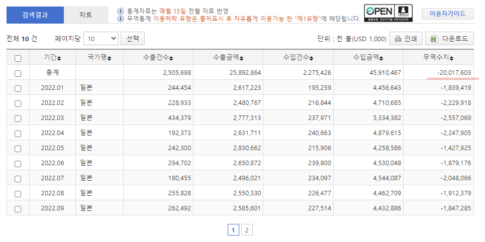 30年以上連続して、日本は黒字で、韓国は赤字。>>8