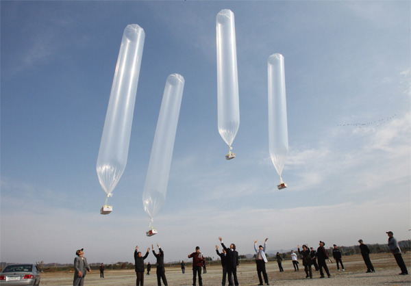 去年3月、韓国・坡州では脱北者の団体がバルーンを飛ばしていた。